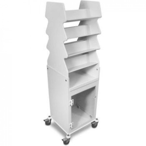 TrippNT™ 51019 White Tall Titled Shelf Cart with Bulk Storage Area, 19"W x 17"D x 57"H