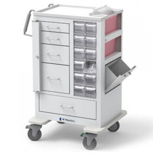 The Waterloo All-in-One cart was originally purpose built to allow phlebotomists the opportunity to spend more time on patient floors and less time heading back to the lab for fresh supplies. This very popular cart offers a variety of storage compartments and tilt bins for all your phlebotomy supplies. But this cart is much more than for phlebotomy alone. With the built in tilt bins, waste receptacle and removable trays this cart can be used as an IV cart, Suture cart, etc... The sky's the limit when it comes to the versatility of our All-In-One cart. Other features include: